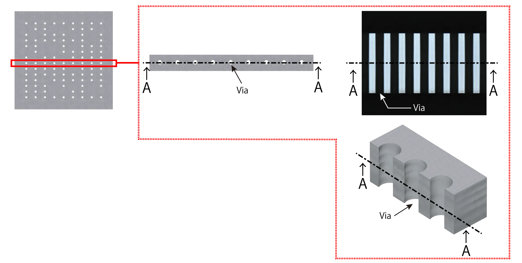 However, since chiplets mount multiple chips within a single semiconductor package, the core substrate forming the package's foundation tends to increase in size. Simultaneously, it is necessary to densely form fine interconnects between chiplets and numerous vias*1 on the core substrate, making high-precision processing technology indispensable.