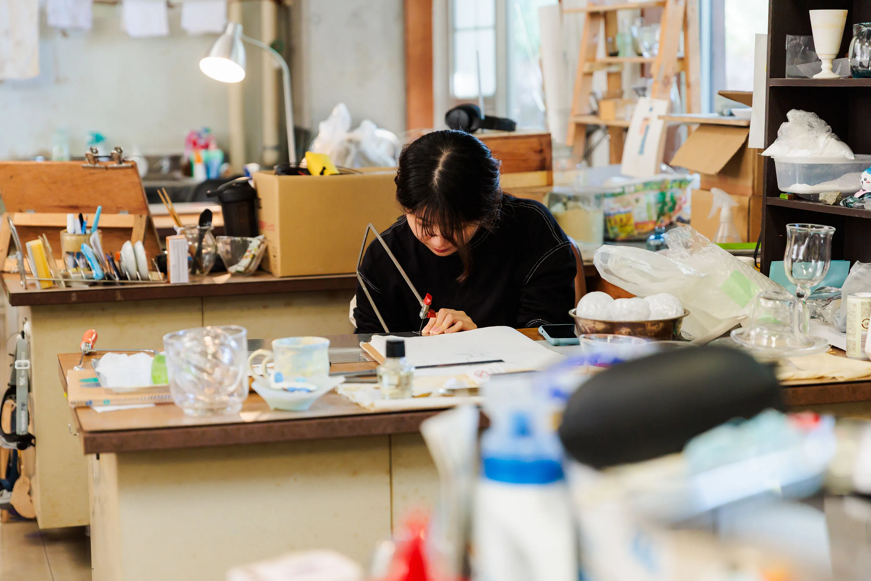 一方で、当研究所には様々な興味や将来像を持った学生が集まります。器や彫刻を作りたい学生、建築を学んでガラスを取り入れたいという学生、将来カフェを開きたいという学生もいます。そういった多様な学生たちの将来のプラスになるよう、ガラス以外の分野からも先生を招いて授業を行っています。ガラスを外に向けて広げる意味でも、ガラス以外の分野の人と繋がるチャンスは重要だと考えています。